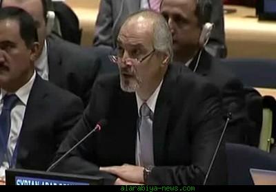 وختم الجعفري بالقول: بما أن وجود الإرهاب في سورية وخاصة الممارس من قبل الجماعات التكفيرية التابعة لتنظيم القاعدة الإرهابي قد أصبح حقيقة لا يمكن إنكارها وبما أن المعلومات تظهر أن الجماعات المتطرفة التي ازداد عددها في سورية بشكل حاد هي المسؤولة عن استمرار هذه الأزمة بما في ذلك جانبها الإنساني فإننا ندعو الجمعية العامة من على هذا المنبر إلى دراسة معمقة للمخاطر التي تسببها مسألة انتشار الإرهاب في سورية وخاصة ذلك الإرهاب الأصولي الوهابي التكفيري الذي ترعاه أنظمة الحكم في السعودية وقطر وتركيا ودول أخرى.