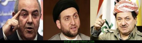 كشف مصدر مطلع، ان رئيس المجلس الاعلى الاسلامي عمار الحكيم ورئيس إقليم كردستان مسعود بارزاني ورئيس ائتلاف العراقية اياد علاوي اقتربوا في تفاهماتهم بشأن شخصية